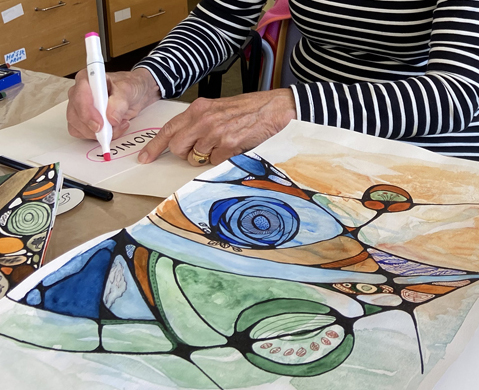Under en dag kommer du också att få lära dig kalligrafi, som du kan använda i dina målningar. Vi kommer också att använda oss av bokstäver i andra former, som t ex schabloner.