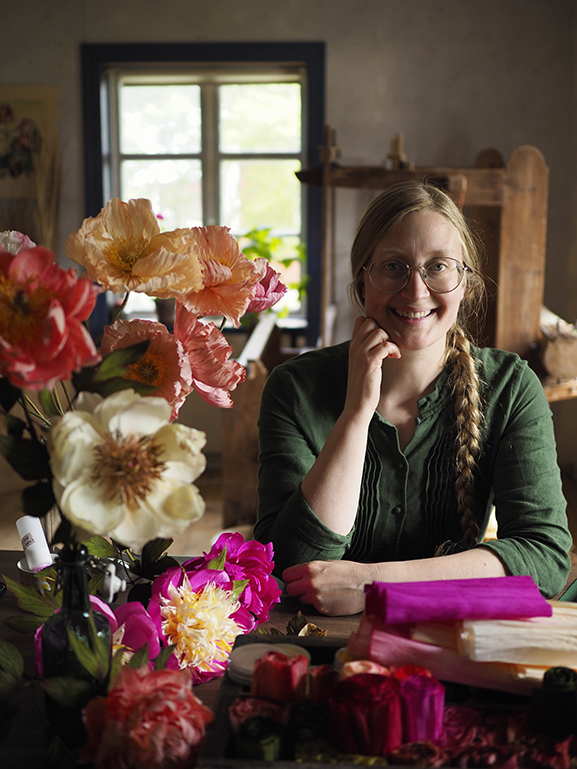 (Fulltecknad) Under denna kurs får du prova på att göra olika sorters blommor, från fantasifulla till naturtrogna. Vi arbetar främst med kräppapper i olika tjocklekar, men även andra papper. Vi börjar med folkliga blommor med inspiration från historien, och du lär dig många olika varianter och detaljer. Sedan går vi vidare med naturtrogna blommor som du lär dig bygga upp från grunden med olika tekniker för att forma ståndare och pistiller, kronblad, stjälkar och blad. Du får också prova att färga och måla pappret för att få personliga, livfulla och varierade papper att arbeta med. Genom arbetet får du en inblick i de konstgjorda blommornas historia och särskilt den folkliga traditionen att dekorera hemmet och dräkten för olika högtider.